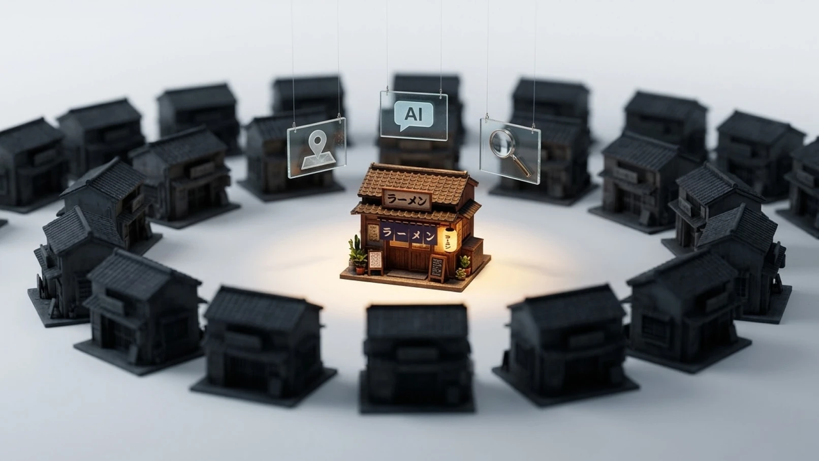 今月発表された調査によれば、AI検索エンジンが推薦する地域ビジネスは全体のわずか1.2%だ。残りの98.8%は、AIにとって「存在しない」のと同じだ。Z世代の40%がGoogleより先にAIチャットボットで飲食店を探し、35〜44歳でもその割合は45%に達している。
